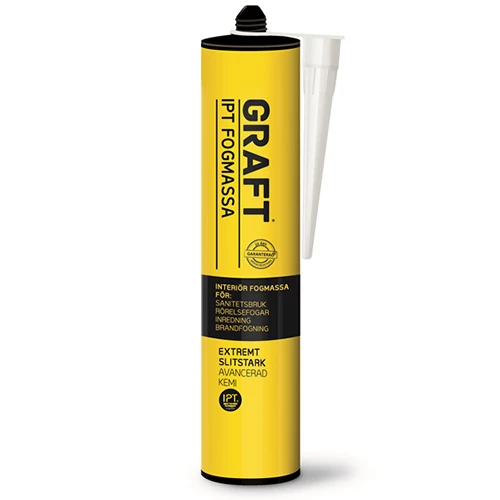 Med den senaste teknologin för fogning erbjuder GRAFT® IPT Fogmassa både hög prestanda och hållbarhet. Den är enkel att använda, fri från miljöfarliga ämnen och idealisk för professionella användare som kräver en pålitlig, flexibel och hållbar fogmassa för en mängd olika byggapplikationer. Dess unika egenskaper gör den till det självklara valet för både stora och små byggprojekt.