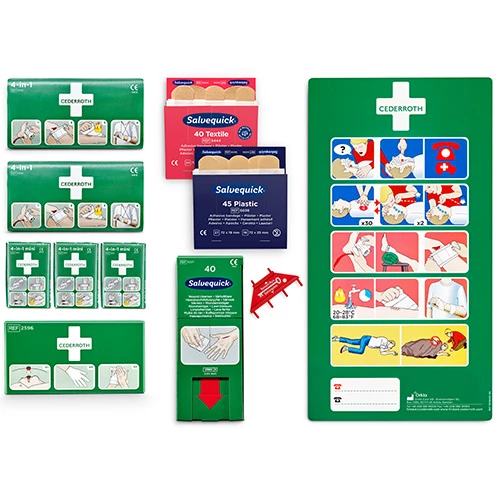 - Kostnadseffektivt: Förnya din första hjälpen-utrustning utan att behöva köpa en helt ny tavla.