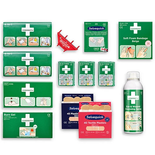 4. Refill-paketet innehåller alla grundläggande förnödenheter som behövs för att hålla din första hjälpen-station komplett och redo att användas vid en nödsituation. Detta inkluderar: