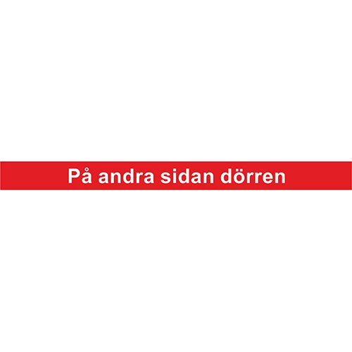 • Text: ”På andra sidan dörren” (kan vara i olika typsnitt beroende på leverantör)